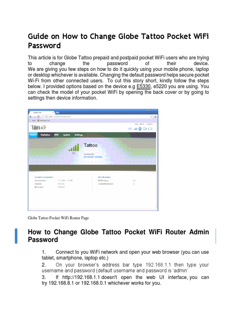 Guide On How To Change Globe Tattoo Pocket Wifi Password Docx