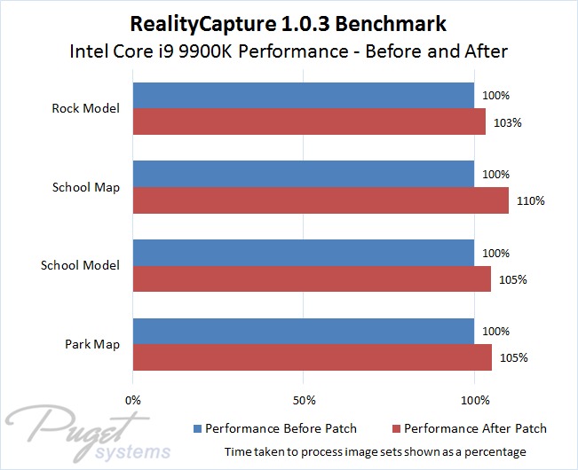 Windows 10 Security Patch Slowed Intel Core I9 9900k In Pix4d Metashape Realitycapture